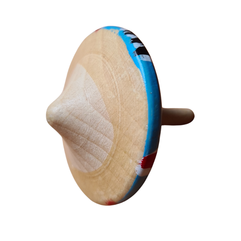 Dřevěná káča s motivem Prahy v nočním provedení zaujme sytě modrým podkladem a jemnými zlatými detaily, které připomínají světla města po setmění. Ručně malovaný design s domky a hvězdnou oblohou dodává každému kusu jedinečný charakter.