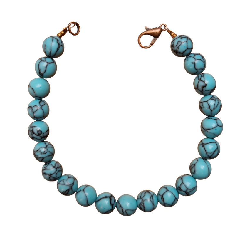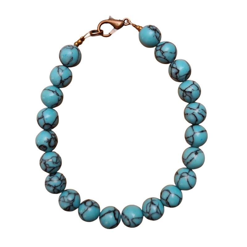 Tyrkysové kameny s jemnou kresbou okamžitě přitáhnou pozornost, ale pořád zůstávají vkusné. Perfektní doplněk pro oživení jednoduchého outfitu.