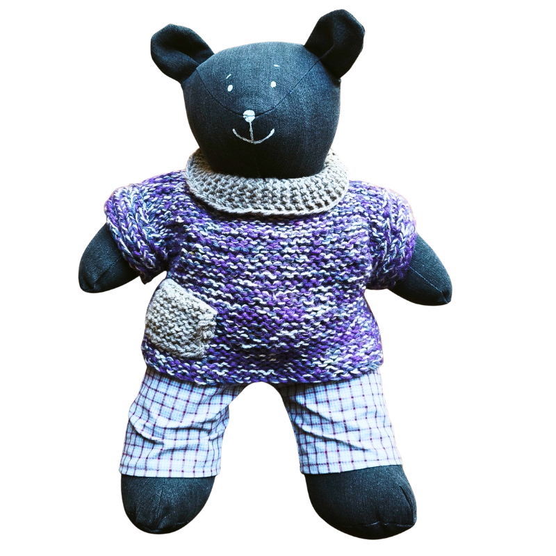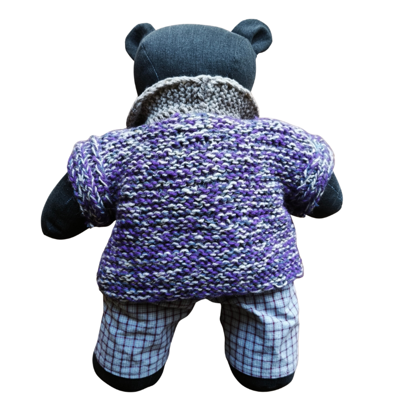 Medvěd ve fialovém svetru