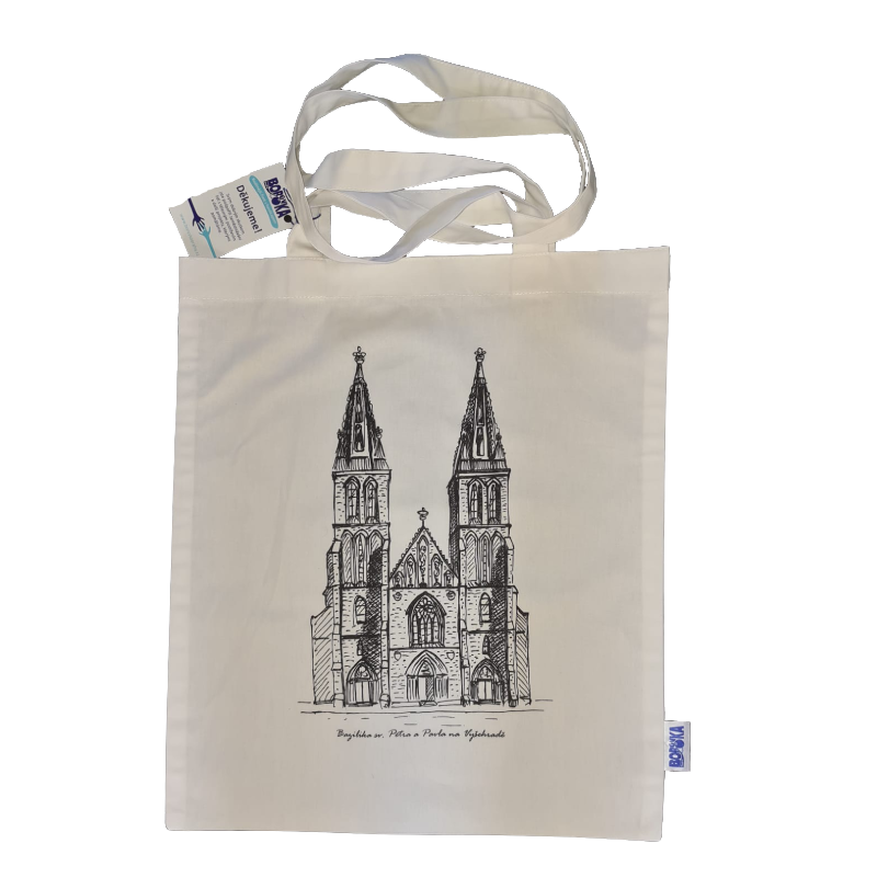 Bavlněná taška přes rameno s unikátním designem baziliky sv. Petra a Pavla na Vyšehradě k sehnání jen u nás v Obchůdku Borůvka.