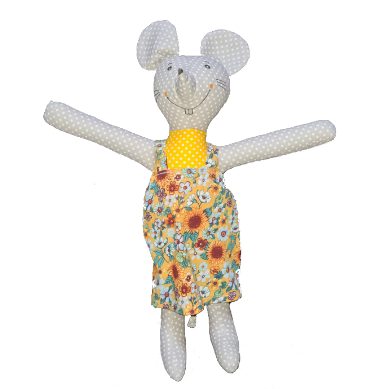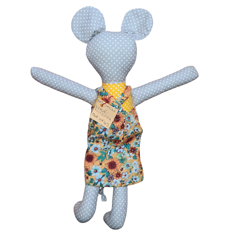 Myška v květinových šatech, textilní dekorace i hračka pro děti, kterou jen tak někdo nemá.